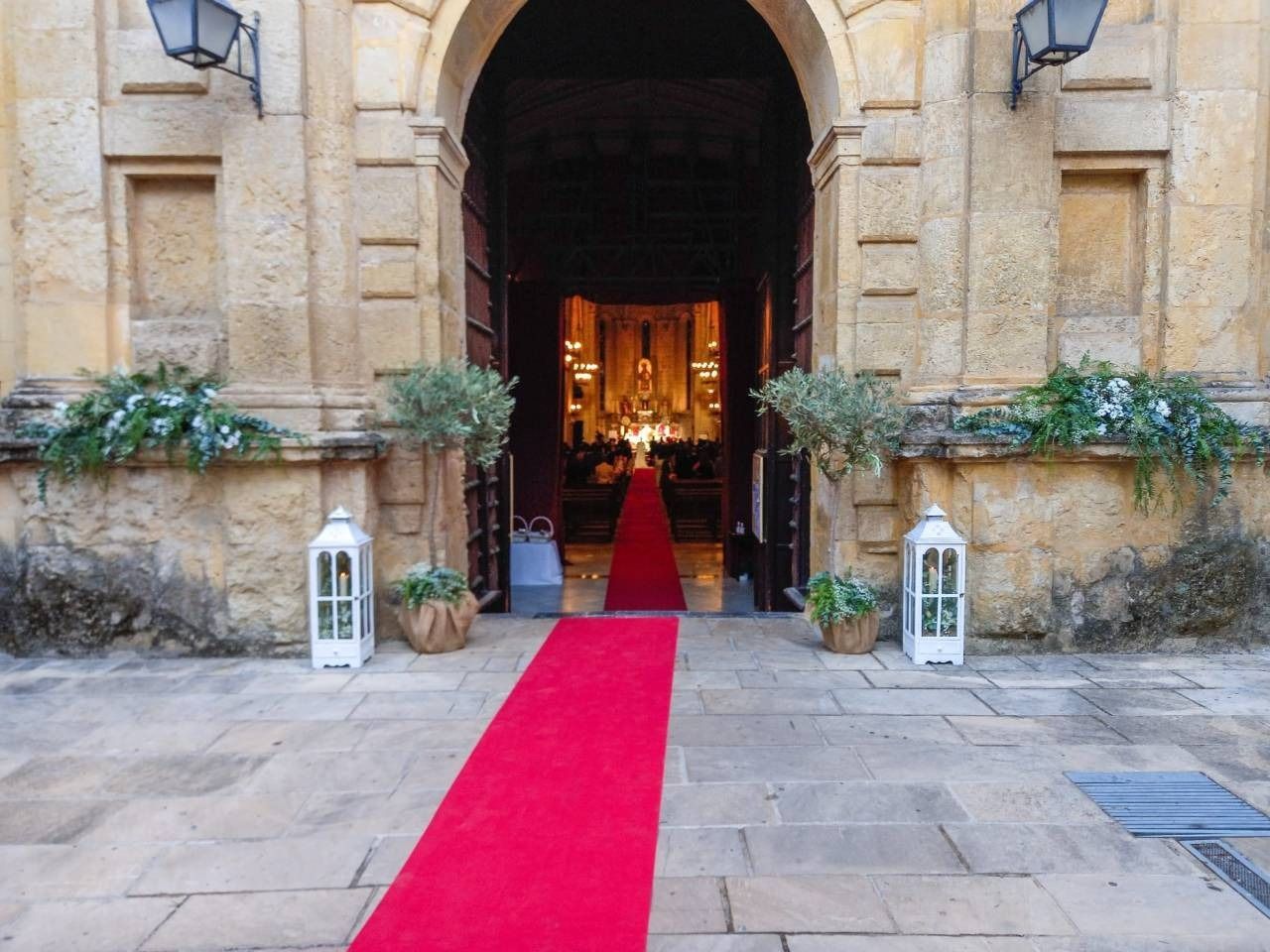 Para la ceremonia celebrada en la Iglesia de San Pablo se optó por una decoración elegante y sobria, apoyándonos en el marco de este precioso templo.